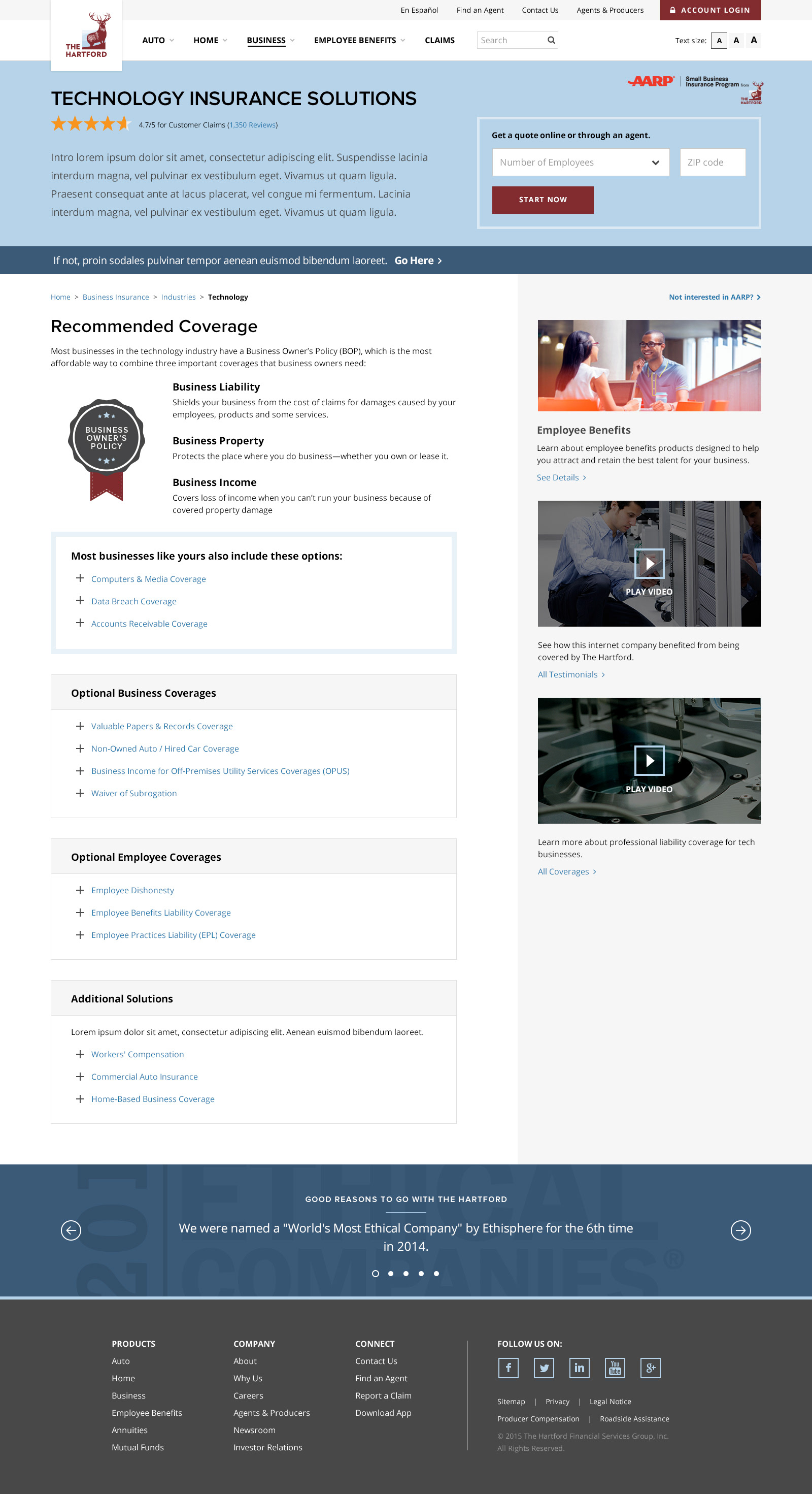I was the Creative Director and principal Content Designer on a big redesign for The Hartford in 2015 that involved an extensive content strategy that streamlined the site to be more optimized for conversion, instead of an SEO Article repository. It also included a highly personalizable module that could be used to more effectively retarget prospects. Shortly after, I wrote a comprehensive Customer Experience Writing Guide for their internal teams, so they could create more engaging and empathetic digital experiences.